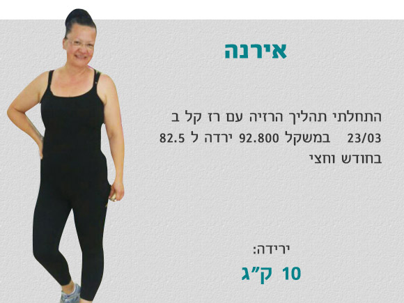 אירנה השילה במשקל 15 ק”ג ו-400 גרם ב- 3 חודשים